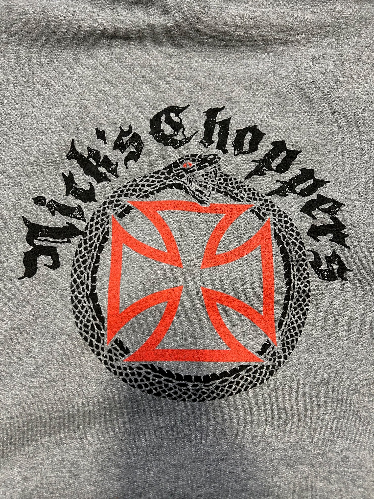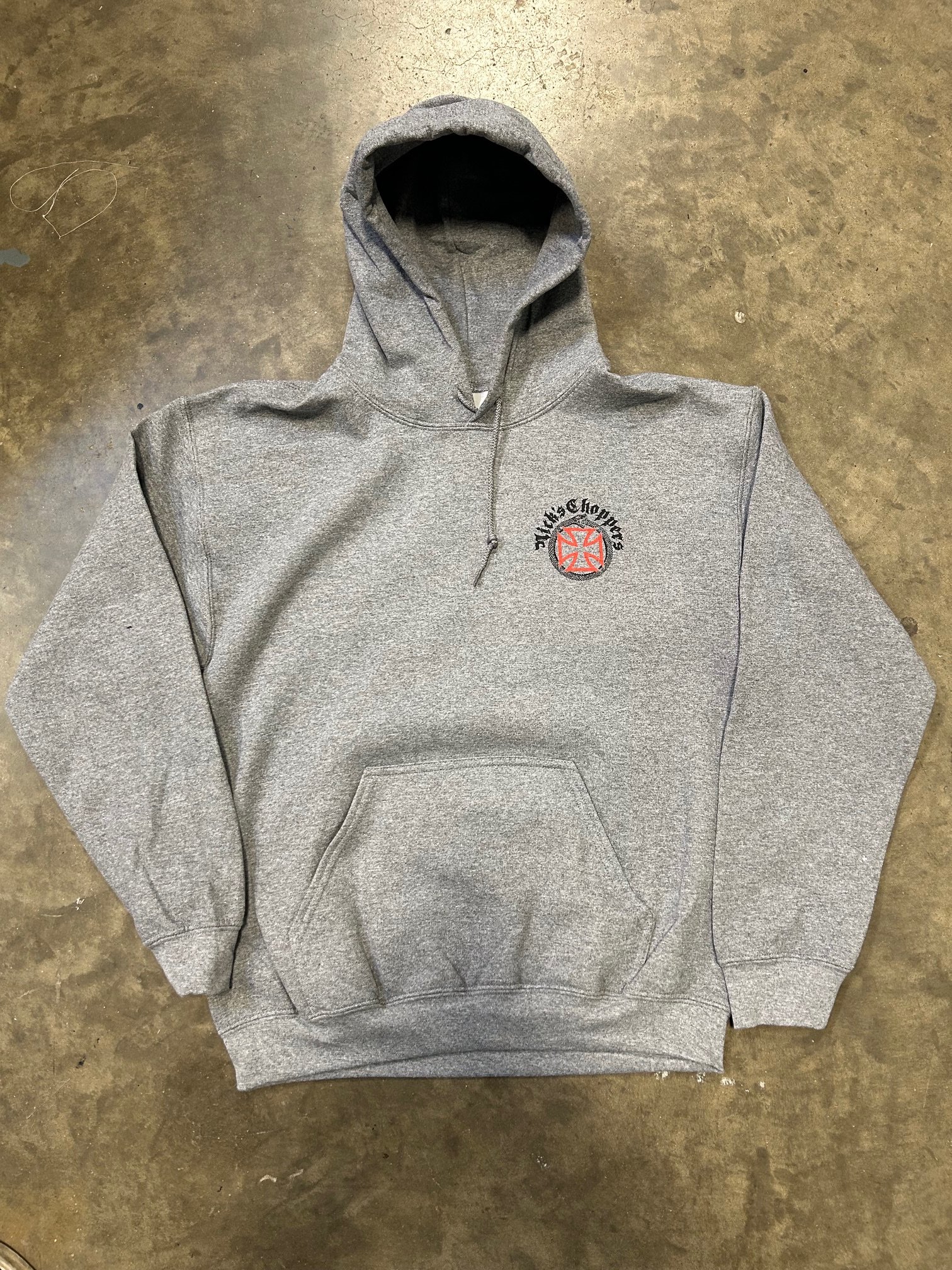 Gildan hoodies as always. Heather Graphite.